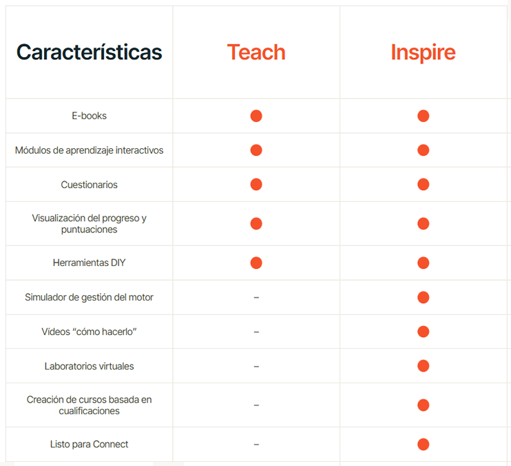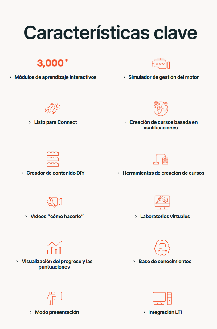 Una parte clave de nuestro éxito reside en tener en cuenta las necesidades del alumnado de formación técnica a lo largo de todo el recorrido de aprendizaje. Hemos desarrollado contenidos y herramientas para ayudar al profesorado de automoción y al alumnado a alcanzar su máximo potencial en cada etapa del ciclo de aprendizaje, haciendo posible el Aprendizaje Basado en el Dominio.